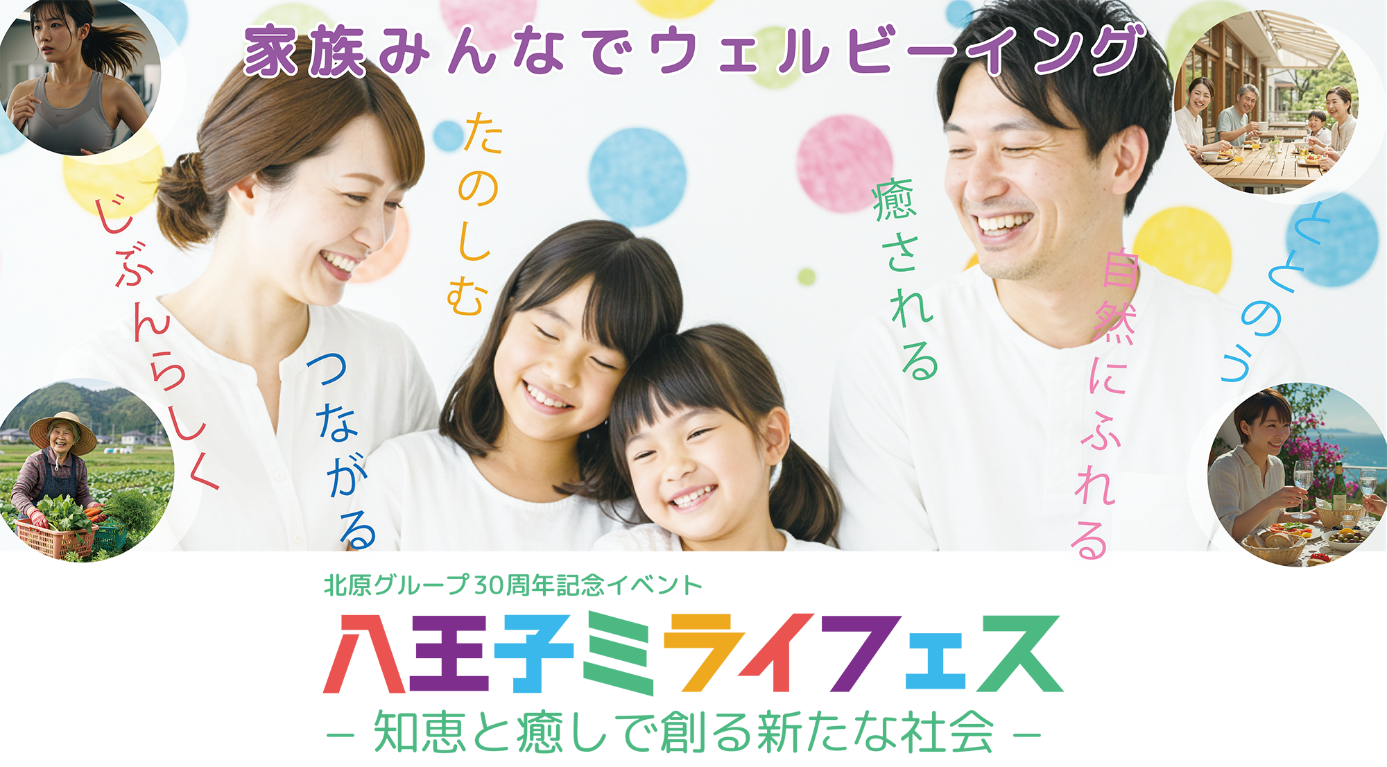 北原グループ(医療法人社団KNI/株式会社KMSI)は、設立30周年の節目にウェルビーイングの未来を体感できる参加型フェス「八王子ミライフェス 2025 ― 知恵と癒しで創る新たな社会 ―」を開催します。